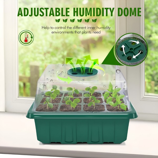 Κάθε δίσκος έχει 12 οπές και καπάκι με διακόπτη αερισμού. Τώρα μπορείτε να ελέγχετε τα επίπεδα υγρασίας και να εξασφαλίζετε το καλύτερο περιβάλλον για τα σπορόφυτά σας. Καλλιεργήστε υγιείς, καλά αεριζόμενες ρίζες για πιο δυνατά φυτά.