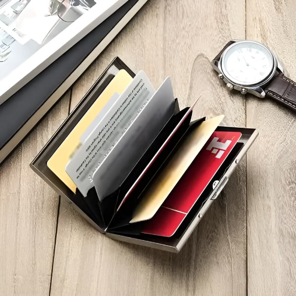 Κατασκευασμένο από υψηλής ποιότητας ανοξείδωτο ατσάλι, αυτό το πορτοφόλι είναι πιο ανθεκτικό και μακράς διάρκειας από τις επιλογές από πλαστικό ή αλουμίνιο, προσφέροντας ανώτερη προστασία για τις κάρτες σας.