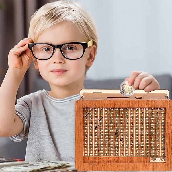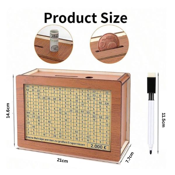 1 x COINSAVE Ξύλινο κουτί αποταμίευσης χρημάτων