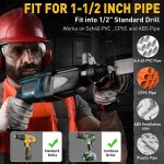 Απλώς προσαρμόστε το σε οποιοδήποτε τυπικό τρυπάνι — δεν απαιτούνται ειδικά εργαλεία. Ιδανικό για σωληνώσεις από PVC, χαλκό, αλουμίνιο και ανοξείδωτο ατσάλι.