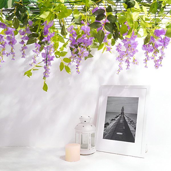 Ψάχνετε να δημιουργήσετε εντυπωσιακές ανθοσυνθέσεις; Η WISBLOOM, η φωτεινή μοβ βιστέρια, με πλούσια πράσινα φύλλα, είναι ιδανική για τη διακόσμηση αψίδων, πέργκολων, τοίχων, βιτρινών καταστημάτων, εστιατορίων, γραφείων, πάρτι και πολλά άλλα. Ανθεκτικά στην υπεριώδη ακτινοβολία και μεγάλης διάρκειας, αυτά τα λουλούδια μπορούν να χρησιμοποιηθούν σε εσωτερικούς ή εξωτερικούς χώρους, προσθέτοντας μια ζωντανή πινελιά σε κάθε περιβάλλον.