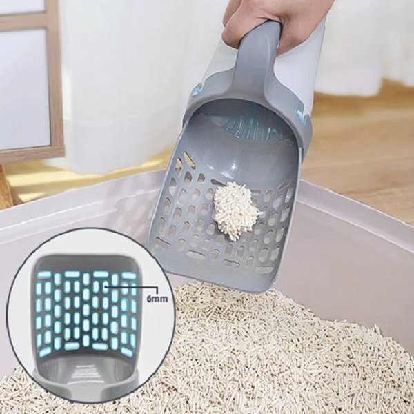Η σέσουλα απορριμμάτων γάτας συνοδεύεται από ένα καλάθι που κρατάει τη σακούλα περιττωμάτων, καθιστώντας την ένα μοναδικό και βολικό εργαλείο για τον καθαρισμό των απορριμμάτων γάτας. Αφού συλλέξετε τα απορρίμματα, απλώς σηκώστε το καλάθι και η σακούλα θα πιάσει όλα τα περιττώματα, αφήνοντας τον δίσκο απορριμμάτων καθαρό. Η απόρριψη των απορριμμάτων είναι επίσης εύκολη.