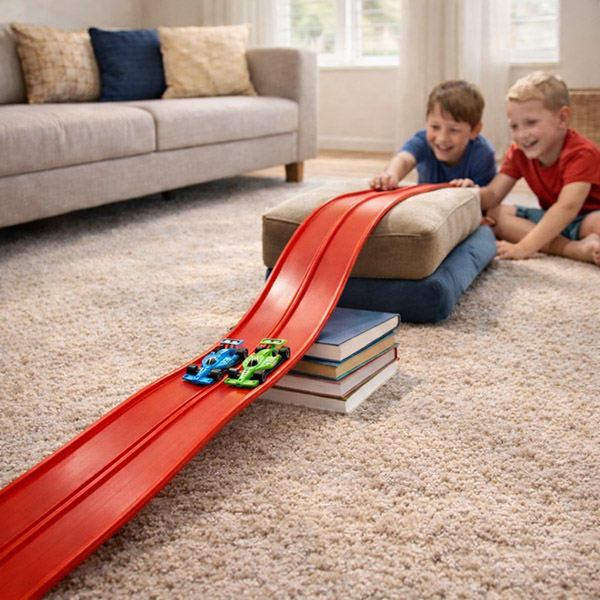 Τα παιδιά μπορούν να διαμορφώσουν την πίστα χρησιμοποιώντας καθημερινά αντικείμενα για να δημιουργήσουν άλματα, τούνελ και βρόχους, ενισχύοντας τη φαντασία και την επίλυση προβλημάτων αντί για επαναλαμβανόμενο παιχνίδι. Τα κρατά συγκεντρωμένα για ώρες χωρίς οθόνες.