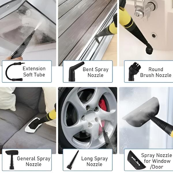 Περιλαμβάνει βούρτσες, ακροφύσια και μαξιλάρια για τον καθαρισμό δαπέδων, αρμόστοκων, παραθύρων και πολλά άλλα.