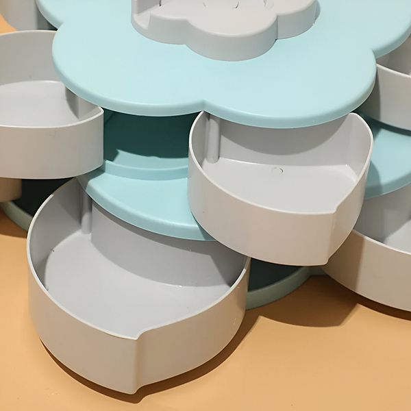 Η αποθήκευση διπλού στρώματος, που ανοίγει σαν λουλούδι, διευκολύνει την οργάνωση της κουζίνας σας και την εξοικονόμηση χώρου.